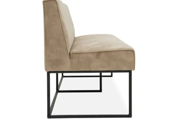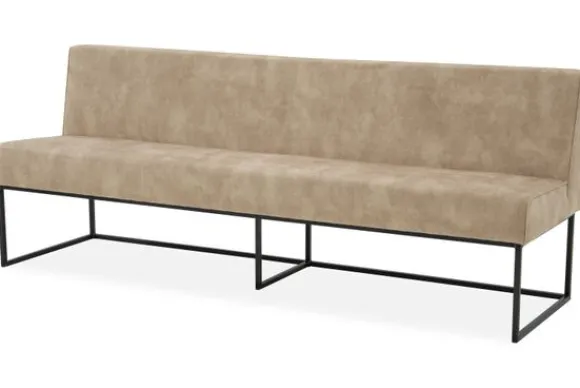 Eetkamerbank Porta van het merk Dutch Design is een stijlvolle eetkamerbank met een gladde rug. Eetbank Porta wordt standaard geleverd met zwart metalen poten.