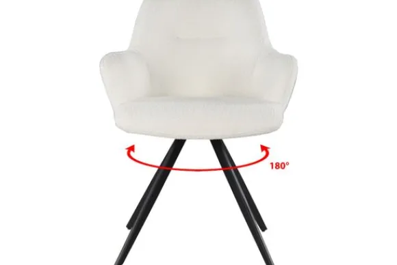 Eetkamerstoel Doreen Boucle White van het merk Livingfurn is verkrijgbaar in verschillende kleuren. De stoel is voorzien van een stijlvolle boucléstof. Bouclé is een zacht en luchtig geweven stof, die een warme uitstraling heeft. De zwarte stalen stoelpoten zorgen dat de stoel stabiel op de grond staat. Deze stoel is 180 graden draaibaar.