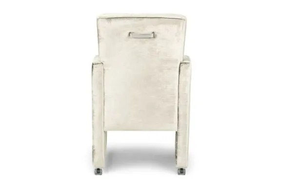 Deze eetstoel wordt standaard uitgevoerd met een handgreep op de achterkant van de rugleuning en met parketwieltjes. Door deze parketwieltjes kun je de stoel makkelijk verplaatsen.