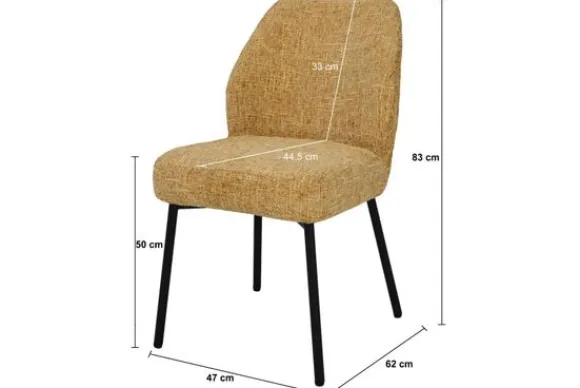 Eetkamerstoel Tess van het merk Livingfurn is een frisse blikvanger met een warme, zongele tint. De grof geweven stof geeft een levendig karakter en zorgt voor een rijke textuur die direct opvalt. De zachte bekleding en comfortabele rugleuning maken deze stoel perfect voor lange diners en gezellige gesprekken aan tafel.