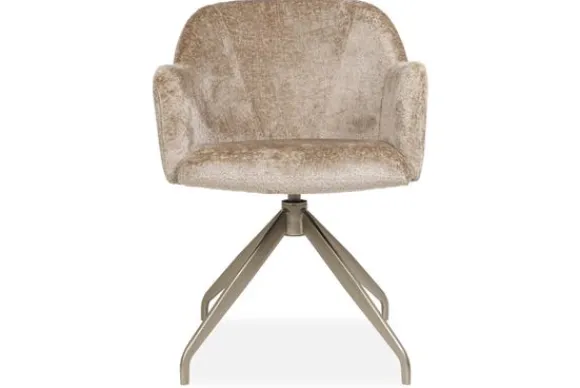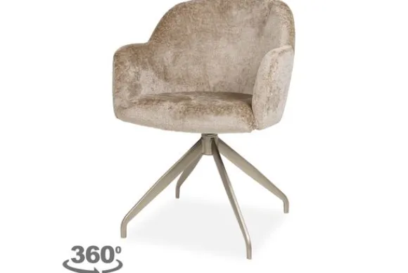 Eetkamerstoel Sentar van het merk Devira is verkrijgbaar in alle kleuren en verschillende materiaalsoorten zoals stof, velvet en rundleder. Deze moderne eetkamerstoel maakt jouw zithoek compleet binnen meerdere stijlen. Je kunt ook heerlijk stevig zitten in de stoel dankzij de ronde armleuningen. De stoel heeft verticale stiksels aan de binnen- en buitenkant van de rugleuning en ronde armleuningen. Deze eetkamerstoel (zoals afgebeeld) wordt standaard geleverd met de 503 champagne metalen 360 graden draaispinpoot met terugdraaisysteem. Bij het terugdraaisysteem kun je de zitting van de stoel draaien en daarna zal deze uit zichzelf weer terugdraaien naar het midden.