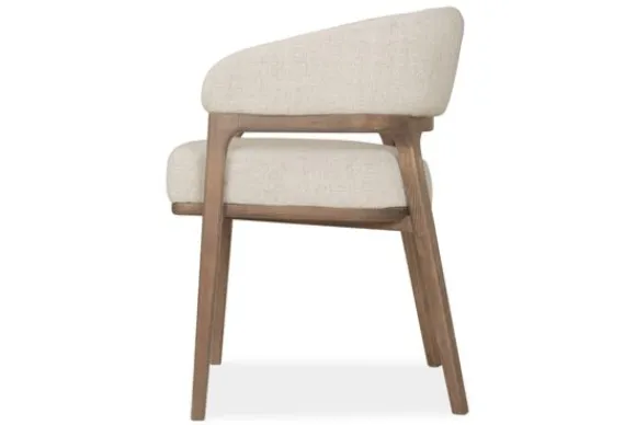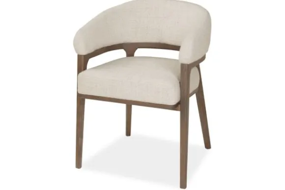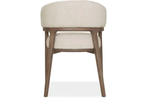 Het houten frame brengt een rustieke charme en een natuurlijke balans in het geheel. De rechte poten en afgeronde details geven de stoel een solide, maar luchtig karakter.