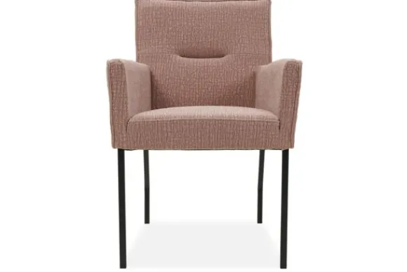 Eetkamerstoel Stromae van het merk France is een comfortabele stoel met een rechte rug en stevige armleuningen. De zachte bekleding en strakke belijning zorgen voor een rustige uitstraling aan tafel.