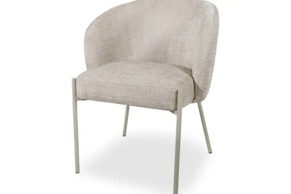 Eetkamerstoel Adele ADL-DC-0002-ARM-2 van het merk MySons is een uitnodiging tot elegant tafelen, met een tijdloos silhouet dat moeiteloos charme en comfort combineert. De zachte, geweven bekleding in een subtiele beige tint vangt het licht op een verfijnde manier, waardoor er een delicate glans ontstaat die perfect past in zowel een modern interieur als een serene Japandi-stijl. De slanke, lichtgouden poten zorgen voor een luchtige uitstraling en brengen een vleugje luxe zonder overweldigend te zijn.