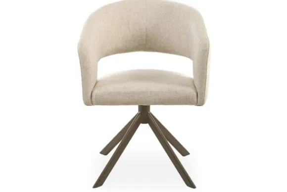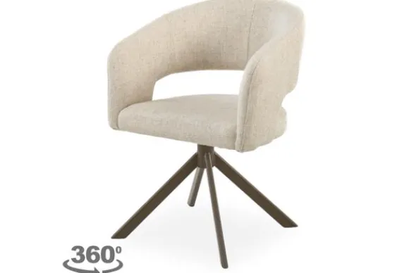 Eetkamerstoel Ekoda van het merk SitSmart is verkrijgbaar in verschillende kleuren. De eetkamerstoel is voorzien van een ronde rugleuning die geleidelijk overloopt in armleuningen. Onderaan de rugleuning zit een opening, dit zorgt voor een ruimtelijke uitstraling. De eetkamerstoel heeft een bruine metalen spinpoot met een 360 graden draaisysteem en een auto return. Bij het terugdraaisysteem is de stoel draaibaar en zal daarna uit zichzelf weer terugdraaien naar het midden, hierdoor heb je de vrijheid om jezelf in iedere gewenste richting te draaien.