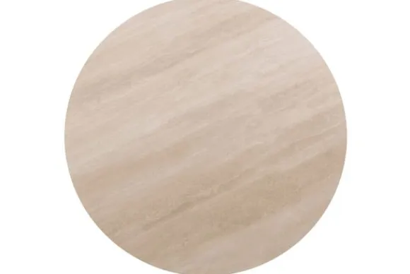 De ronde vorm maakt de tafel uitnodigend en zorgt voor een gezellige sfeer bij elk diner. De tafel is gemaakt van keramiek met een travertinlook, waardoor elk product uniek is.