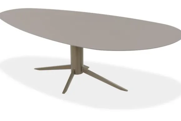 Het tafelblad is verkrijgbaar in verschillende eigentijdse kleuren, van zachte neutrale tinten tot warme aardetonen. De centrale poot is niet alleen praktisch maar ook een esthetisch middelpunt. Je hebt de keuze uit diverse onderstellen, elk met hun eigen karakter, van minimalistisch tot industrieel geïnspireerd.