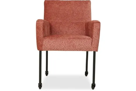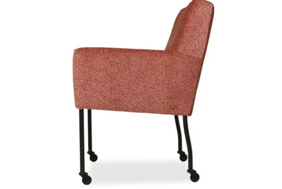 Deze stoel wordt standaard geleverd met zwarte rechte poten met wieltjes en een geknepen naad. Er kan gekozen worden voor andere poten of een dichte naad onder het kopje “Kies je extra’s”.
