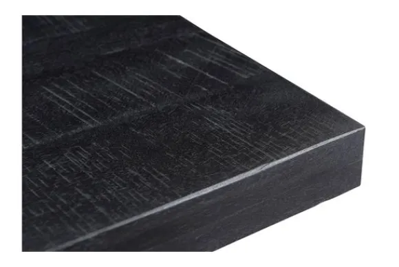 Eettafel Kala is gemaakt van mangohout in de kleur zwart, gecombineerd met gecoat staal. Mangohout is een duurzame houtsoort met een fijne nerfstructuur, waardoor ieder tafelblad een eigen karakter heeft. Het hout is zorgvuldig afgewerkt met een beschermende zwarte finish en geschikt voor dagelijks gebruik.