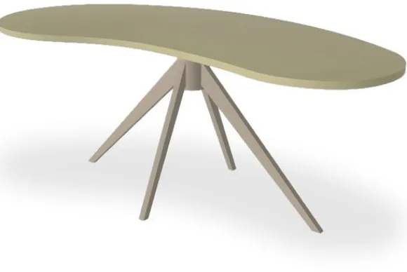 Eettafel Mendoza van het merk Every Table BV heeft een organisch HPL blad van 2,8 centimeter dik. De speelse vorm brengt beweging in de ruimte en maakt de tafel ideaal voor een dynamische opstelling. Het blad is standaard voorzien van een ronde rand.