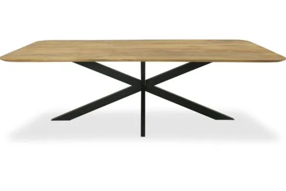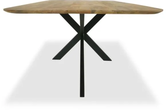 Eettafel Jambe rechthoekig Mango Natural van het merk Wood Wonders is beschikbaar in verschillende afmetingen en direct uit voorraad leverbaar. Deze tafel heeft een rechthoekig blad met afgeronde hoeken, een taps aflopende rand en is gemaakt van mangohout. Mangohout kun je herkennen aan de vele kleurschakeringen en ongelijkheden in het oppervlakte van het hout, waardoor geen enkel meubelstuk hetzelfde is. De kleuren in mangohout kunnen variëren van lichte- tot donkere tonen. Mangohout is een duurzame houtsoort. Hieronder vind je een stoere metalen spinpoot. Deze poot zit in het midden van het blad, zodat je overal rondom de tafel stoelen kan plaatsen.