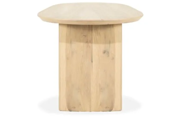 Eettafel Dex van het merk Eleonora is beschikbaar in verschillende afmetingen. Het ovale tafelblad, vervaardigd uit massief eikenhout, straalt natuurlijke warmte en verfijning uit. Elk stuk eikenhout is uniek – de rijke nerven en subtiele noesten vertellen hun eigen verhaal, waardoor geen twee tafels exact hetzelfde zijn. Deze natuurlijke variaties geven de tafel een authentiek karakter en zorgen voor een levendig, zintuiglijk oppervlak.