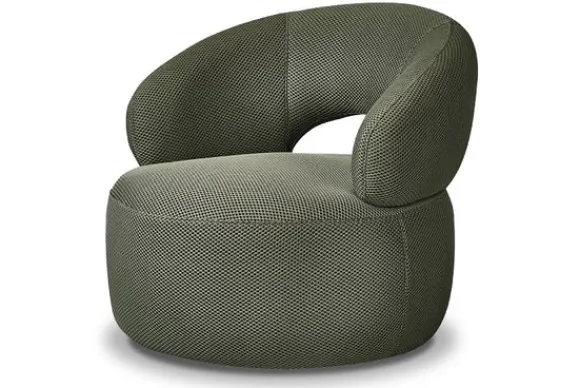 Fauteuil Suite GA-80.210 van het merk Label51 is een opvallende stoel met ronde vormgeving. De fauteuil is bekleed met de stof Breathe Hunter 77.