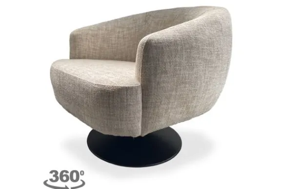 Fauteuil Barga NC 0417 van het merk Tower Living is een moderne draaifauteuil met een krachtige uitstraling en een uitnodigend silhouet. De bekleding in een zachte beige tint toont een subtiel geweven textuur die zowel rust als verfijning uitstraalt, terwijl de robuuste zwarte metalen draaivoet zorgt voor een stoer accent. Dankzij het 360 graden draaimechanisme voegt Barga een speels element toe aan de ruimte, zonder in te boeten op elegantie.