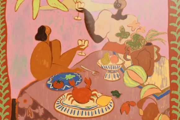 Schilderij Lunch With the Ladies is verkrijgbaar in verschillende afmetingen. Daarnaast is de afbeelding ook verkrijgbaar als wandkleed en art print.
