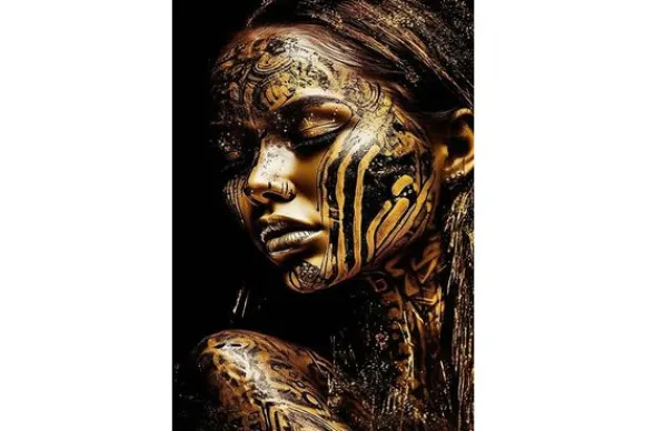 Glasschilderij Zwartgele Details 0801203D-025 van het merk Ter Halle is 80 cm breed en 120 cm hoog. Op dit schilderij zie een vrouw die haar ogen dicht heeft. Ze is beschilderd met zwart en gele tekeningen. Dit schilderij heeft een 3D reliëf. Een glasschilderij heeft levendige kleuren, een glanzende afwerking en een realistisch diepte-effect. Al deze eigenschappen zorgen voor de luxe uitstraling van dit schilderij.