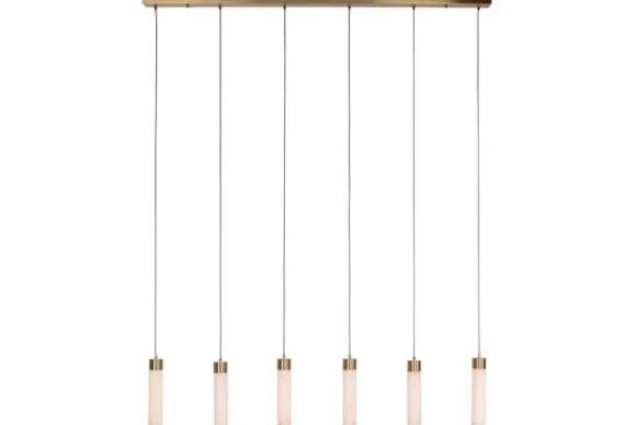 Hanglamp Elaris 214469 van het merk Richmond Interiors is een stijlvolle lamp met zes pendels, elk gemaakt van Spaans albast. Dit natuurlijke gesteente staat bekend om zijn zachte, doorschijnende structuur die het licht op een warme manier doorlaat.