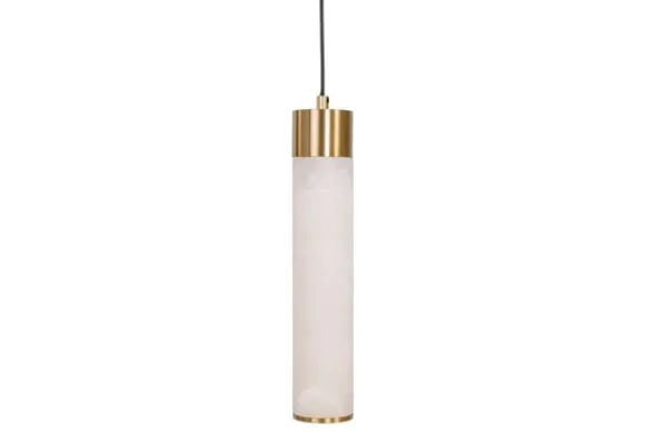 Dankzij de natuurlijke aders in het albast is elke hanglamp uniek in tekening en karakter. De goudkleurige accenten voegen een luxueus detail toe dat perfect combineert met het zachte licht.