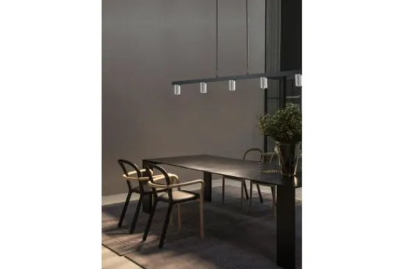 Hanglamp Bounce 2491-05-37-130-5 van het merk Masterlight is een eenvoudige maar stoere lamp. De vijf lampenkappen zijn matzilver en hebben een hoogte van zeven centimeter met een diameter van vijf centimeter. De moderne lamp combineert mooi met de zwarte metalen afwerking en komt goed tot zijn recht in verschillende soorten ruimtes. Hang de hanglamp boven je eettafel, salontafel of in de serre… Er zit geen lichtbron bij deze lamp. Maak de lamp compleet door het lichtbronpakket erbij te kiezen in je winkelmand.