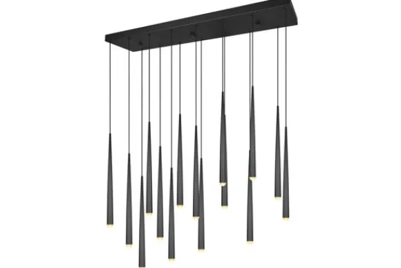 Hanglamp Cala van het merk Trio Lighting is met haar simplistische en stijlvolle design zeker een aandachtstrekker in iedere ruimte. Deze lamp met vijftien lichtbronnen zorgt boven de eettafel of bijvoorbeeld een toonbank voor een gerichte verlichting met een mooi effect. Dankzij de geïntegreerde dimmer is de helderheid eenvoudig aanpasbaar en kun je zo altijd de gewenste sfeer creëren. De armaturen zijn gemaakt van metaal en met haar mat zwarte kleur past zij perfect in iedere moderne woonruimte. De lamp is inclusief een LED lichtbron die wordt gekenmerkt door een hoge lichtkwaliteit, lange levensduur en is ook nog een energiezuinig.