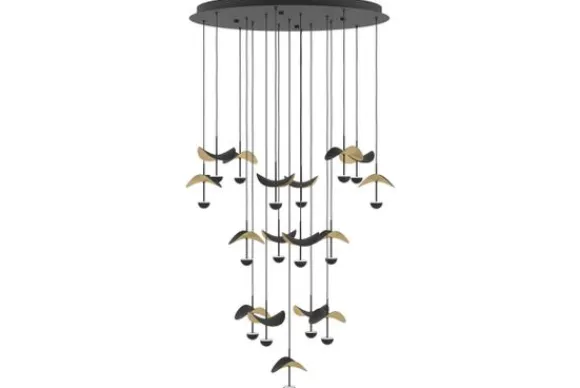 Hanglamp Dracera van het merk Eglo is een speelse lamp met gebogen gouden blaadjes en strakke lampjes eronder. Deze desinghanglamp geeft een gezellige sfeer in je woonruimtes. Dim de lamp voor de meer knusse momenten of zet het licht juist feller wanneer je bijvoorbeeld gezellig een spelletje aan het spelen bent. De hanglamp heeft op verschillende hoogtes 17 goudkleurige gebogen blaadjes, 17 en zwartkleurige lampen en is in het zwart afgewerkt. De hanglamp is incusief de lichtbronnen.