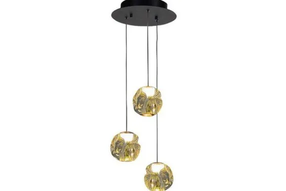 Hanglamp Melina van het merk Highlight combineert modern design met een luxueuze uitstraling. Het gouden, organische patroon van de drie lampenkappen creëert een speels effect in de ruimte. Perfect boven een eettafel, in een gezellige zithoek of als speelse eyecatcher in een gang. De lamp is inclusief LED lichtbron en dimbaar via een externe dimmer. Ook is deze lamp in hoogte verstelbaar.
