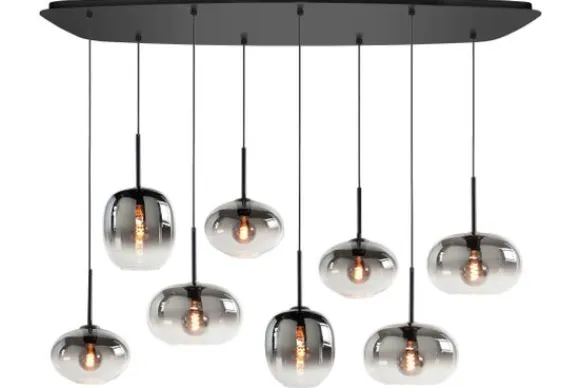 Hanglamp Bellini van het merk Highlight heeft acht rookglazen lampenkappen van verschillende formaten. Deze acht lampen zijn verstelbaar in lengte. De maximale lengte is 160 cm. De lampen kunnen op verschillende hoogtes gehangen worden, waardoor je een speels effect creeërt. De Bellini serie bestaat uit een tafellamp, een wandlamp, een vloerlamp en hanglampen. Deze zijn er zowel in rookkleurig glas als in goudkleurig glas. Maak je interieur helemaal af met de complete serie.