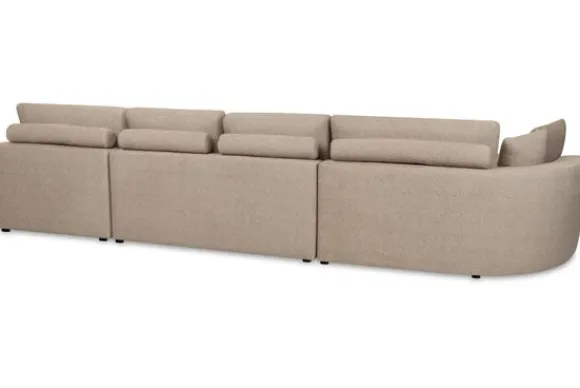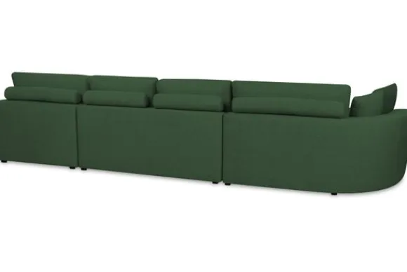 Deze moderne loungebank is het perfecte middelpunt voor de woonkamer. De strakke lijnen van het ontwerp staan in speels contrast met het ronde divangedeelte, wat de bank een robuuste maar uitnodigende uitstraling geeft die moeiteloos past binnen een grote verschijdenheid aan interieurstijlen.