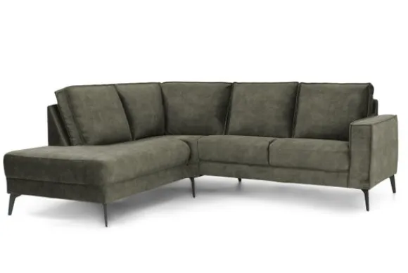 Hoekbank Sharida van het merk Danish Design is beschikbaar in alle kleuren en in diverse materiaalsoorten zoals stof, velvet en rundleder. Je kunt kiezen uit diverse afmetingen. Dit bankstel oogt ruimtelijk dankzij de smalle armleuning en de hoge metalen hoekpootjes. De rugkussens zijn afgewerkt met stoere geknepen naden.