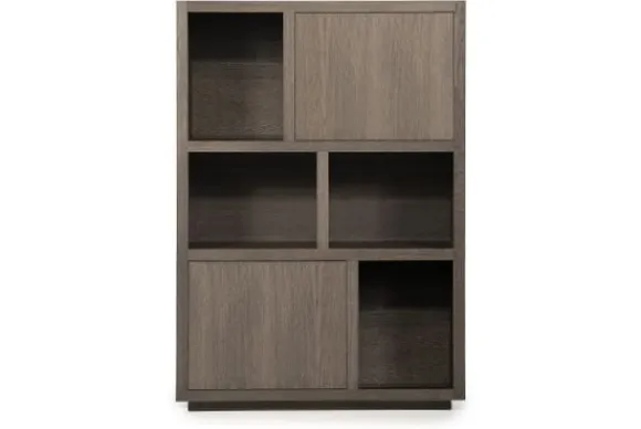 Het kabinet heeft open vakken in diverse formaten en is voorzien van twee deuren. Deze indeling biedt ruimte voor servies, woonaccessoires of boeken. De combinatie van open en gesloten vakken zorgt voor een overzichtelijke en praktische opstelling. Het kabinet maakt deel uit van een met bijpassende meubels.