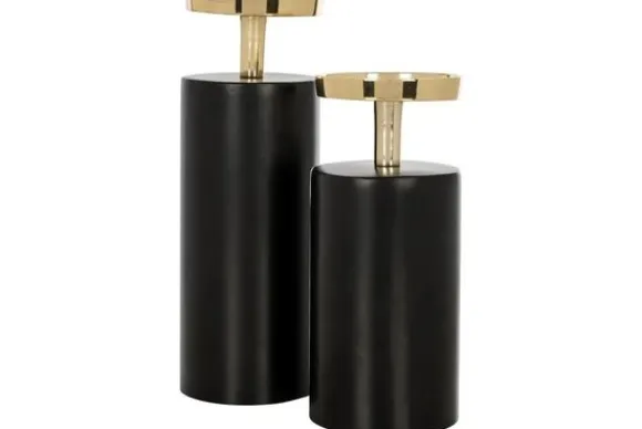 Kandelaar Caya Black Gold Klein 211584 van het merk Richmond Interiors is gemaakt van aluminium. De chique kandelaar heeft een afmeting van H21xØ9 cm en is geschikt voor stompkaarsen. De kandelaar is ook verkrijgbaar in een groter formaat die perfect met deze kandelaar te combineren is.