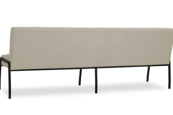 Deze eetkamerbank wordt standaard uitgevoerd met metalen poot, er kan gekozen worden om 2 handvaten aan de rugleuning te laten maken.