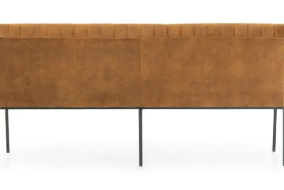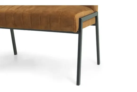 Deze eetbank wordt uitgevoerd met metalen poten met kunststof dopjes en met verticale stiksels in de rugleuning en in de zitting.