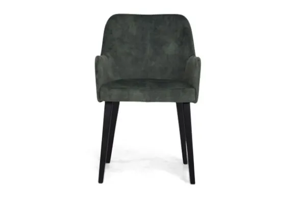 Deze stoel wordt standaard uitgevoerd met zwarte houten poten.
