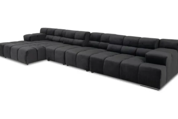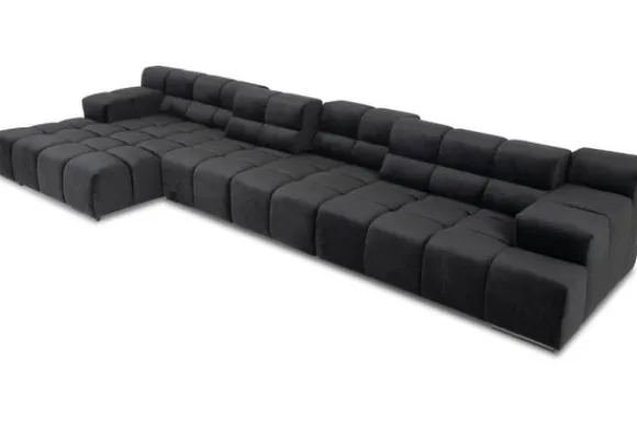 Dit bankstel is samen te stellen in vele afmetingen en verschillende opstellingen, of kies uit een van de standaard opstellingen. Ook kan je kiezen uit mat zwarte of chroom pootjes en zijn er bijpassende hoofdsteunen, sier- en lendekussens en poefjes beschikbaar. Deze worden uitgevoerd in dezelfde stof als de bank.