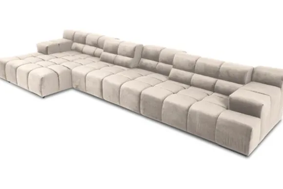 Bankstel Salvatore van het merk Studio Ralph is een luxe blikvanger met een robuuste, unieke uitstraling dankzij de vaste kussens en het blokkenpatroon.