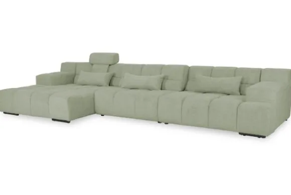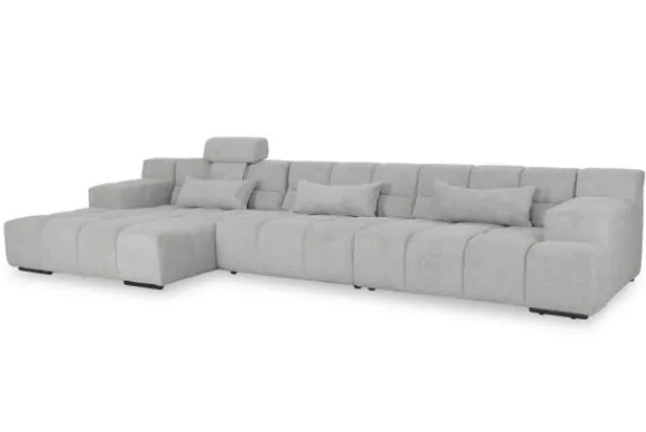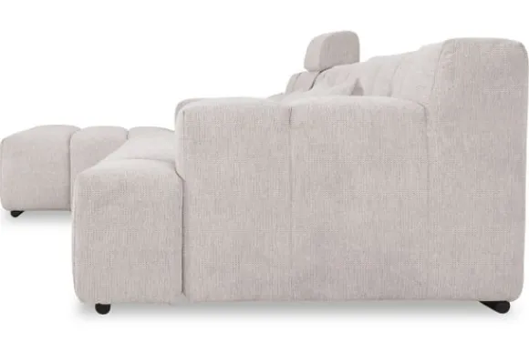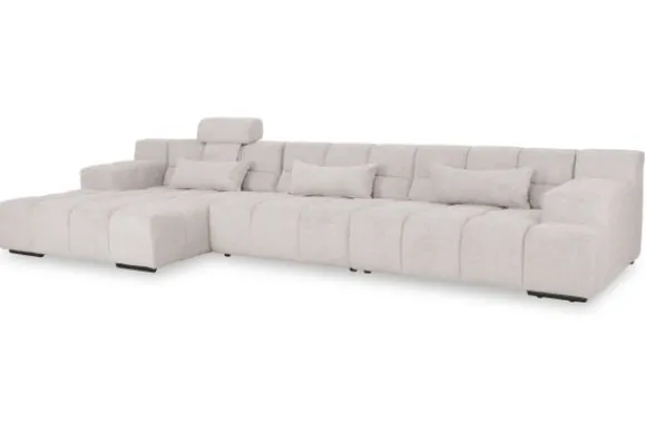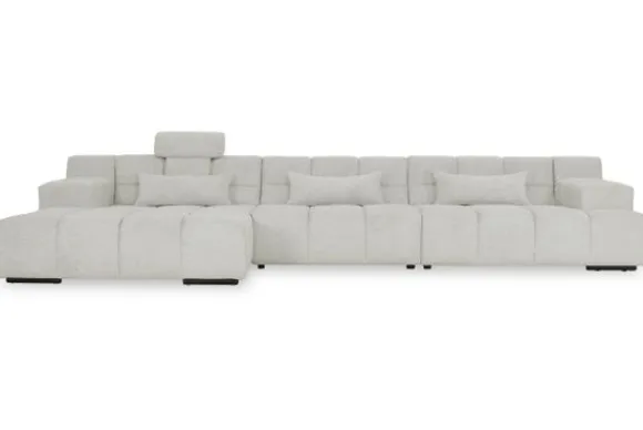 Dit bankstel is samen te stellen in vele afmetingen en verschillende opstellingen, of kies uit een van de standaard opstellingen. Ook kan je kiezen uit mat zwarte of chroom pootjes en zijn er bijpassende hoofdsteunen, sier- en lendekussens en poefjes beschikbaar. Deze worden uitgevoerd in dezelfde stof als de bank.
