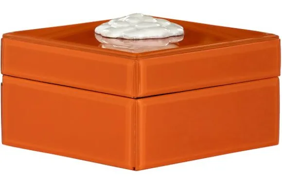 Opbergdoos Lunia 212091 van het merk Richmond Interiors is vervaardigd uit aluminium, glas en MDF. Opbergdoos Lunia past goed in het retro interieur door de rood/oranje kleur en de witte bloem bovenop de deksel. Perfect om bijvoorbeeld accessoires of sieraden in op te bergen.