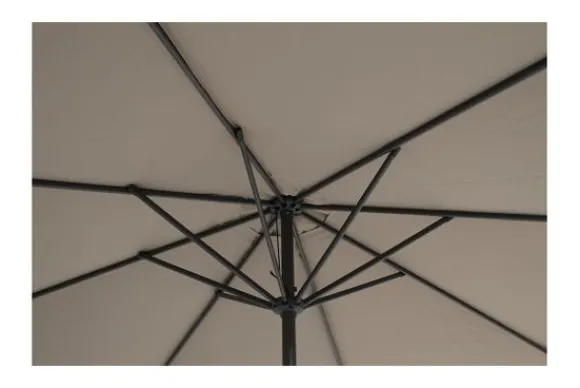 Deze parasol wordt standaard geleverd zonder voet. Deze is toe te voegen onder het kopje “Extra Opties”.