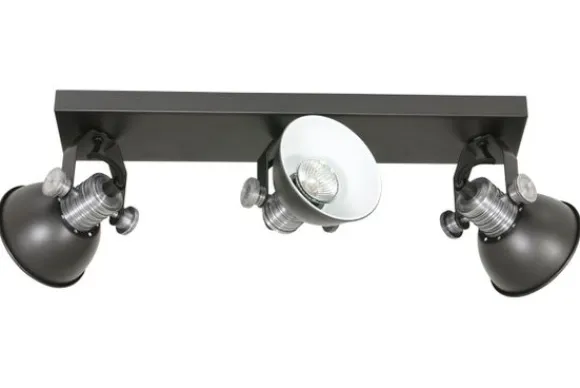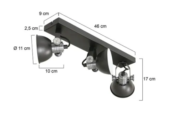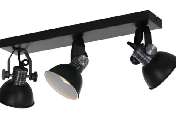 Plafondspot Brooklyn 2134ZW van het merk Steinhauer is een zwarte stoere 3-lichts plafond of wandspot uit de Brooklyn LED serie. Deze industriële spot is verstelbaar middels grove verstel knoppen. De lamp wordt inclusief GU10 LED 7 watt geleverd. De lichtbron is dim to warm en dimbaar via een externe dimmer. Dim to warm betekend dat je in kleurtemperatuur kunt dimmen, je kan dimmen van 2200 Kelvin tot 2700 Kelvin en de lichtopbrengst is 480 Lumen per lichtbron. De Brooklyn is vervaardigd uit metaal met een betonlook. Het armatuur is voorzien van een stoffen/strijkijzer kabel. De diameter van de kap is 11 centimeter en de totale hoogte van het armatuur is 12 centimeter.
