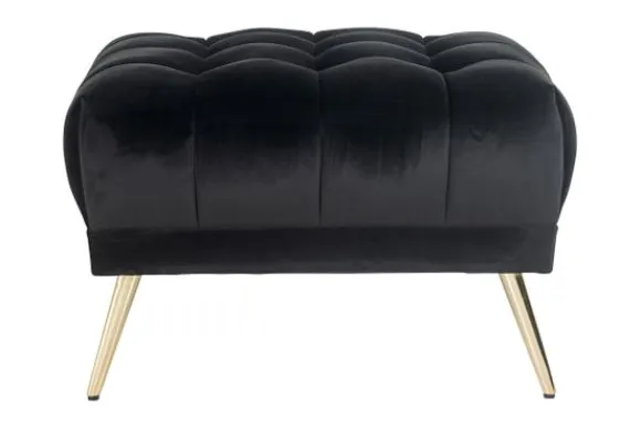 Poef Huxley 211255 Antraciet Velvet van het merk Richmond Interiors heeft een klassieke, luxueuze uitstraling. De poef is gestoffeerd met Quartz antraciet 801 en heeft een gecapitonneerde zitting. De poten zijn gemaakt van brass (staal in mat goud). De poef is verkrijgbaar in meerdere kleuren.