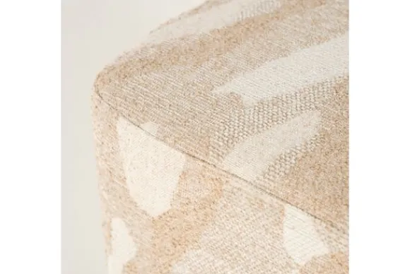 De poef combineert comfort met eigentijdse flair. Het subtiele patroon in de bekleding creëert een mooi samenspel van tinten dat moeiteloos aansluit bij diverse woonstijlen.