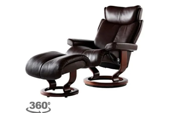 Relaxfauteuil Magic Classic van het merk Stressless is verkrijgbaar in alle kleuren. Tevens is de fauteuil leverbaar in stof en rundleder. Je kunt bij deze fauteuil kiezen uit diverse maten zoals Small, Medium en Large. Deze fauteuil heeft een Plus en Glide Systeem: Aan beide zijden van de fauteuil zit een knop waarmee je de weerstand van de stoel kan aanpassen naar eigen behoefte. Door de knoppen in tegengestelde richting te draaien stel je jouw ideale relaxpositie samen. Op die manier krijgt de nek en de onderrug goede onderstuening. Door de rugleuning naar voren te buigen activeer je de slaapfunctie. Op het moment dan je weer rechtop komt stelt de stoel zichzelf weer bij naar de normale stand.