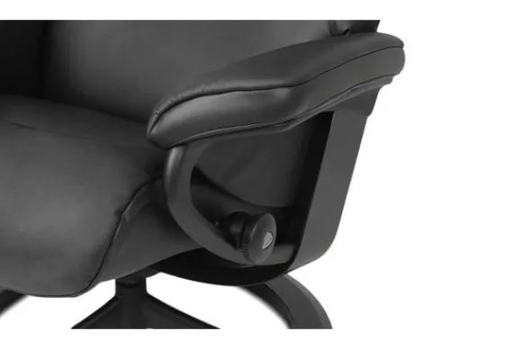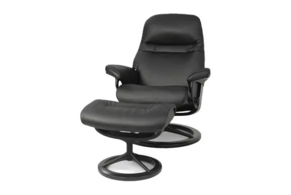 Relaxfauteuil Sunrise Signature van het merk Stressless is verkrijgbaar in alle kleuren. Tevens is de fauteuil leverbaar in stof en rundleder. Je kunt bij deze fauteuil kiezen uit diverse maten zoals Small, Medium en Large. Deze fauteuil heeft een Plus en Glide Systeem: Aan beide zijden van de fauteuil zit een knop waarmee je de weerstand van de stoel kan aanpassen naar eigen behoefte. Door de knoppen in tegengestelde richting te draaien stel je jouw ideale relaxpositie samen. Op die manier krijgt de nek en de onderrug goede ondersteuning. Door de rugleuning naar voren te buigen activeer je de slaapfunctie. Op het moment dan je weer rechtop komt stelt de stoel zichzelf weer bij naar de normale stand.