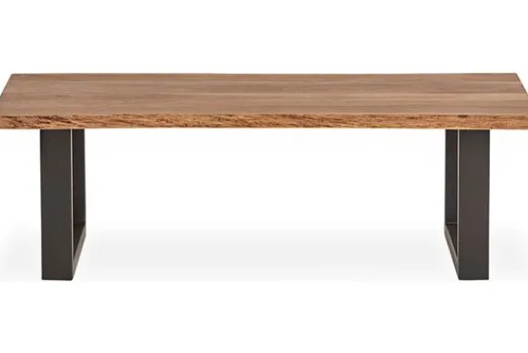 Salontafel Freeshape van het merk MySons is gemaakt van acaciahout. De lange zijden zijn organisch van vorm, dus onregelmatig. Bij deze boomstamtafel heeft het blad haar natuurlijke uitstraling behouden, waardoor iedere tafel uniek is. Onder de tafel zit een metalen onderstel dat op twee verschillende plekken te monteren is. Hierdoor kan zelf de gewenste afstand tussen de poten bepaald worden.