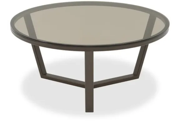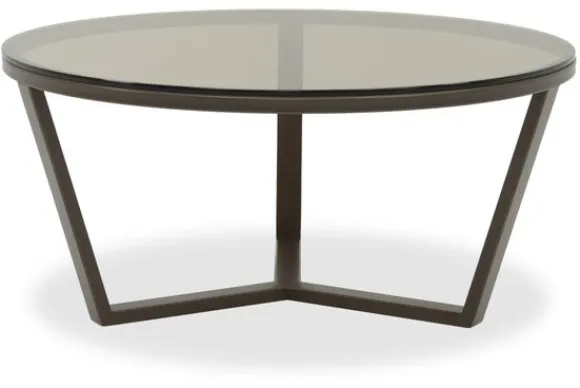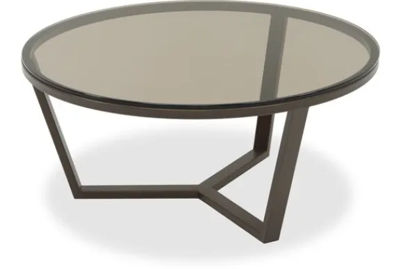 Salontafel Sian van het merk BL Design is een ronde salontafel met een diameter van 80 cm. Deze uitvoering heeft een tafelblad in Smoked Brown glas en staat op een anodic brown metalen driepoot.