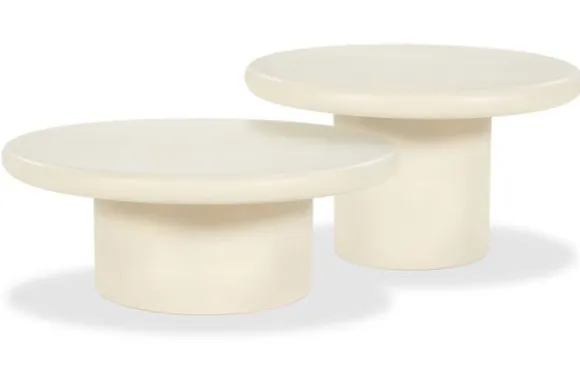 Salontafelset Jade van het merk Eleonora is een toonbeeld van hedendaagse elegantie en ingetogen luxe. De sculpturale vormen, vervaardigd uit lichtgewicht Magnesium Oxide, creëren een harmonieuze balans tussen stevigheid en verfijning. De royale ronde bladen rusten op krachtige tonvormige onderstellen, afgewerkt in een matte beige tint die een tijdloze en serene uitstraling geeft.
