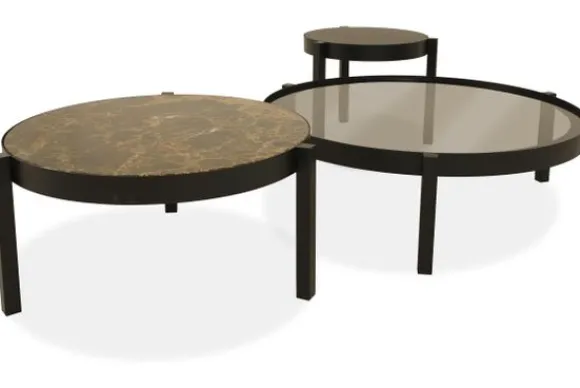 Salontafelset Spezia van het merk BL Design is beschikbaar met drie tafelbladen in verschillende materiaalsoorten en verschillende pootkleuren. De afmetingen van de afgebeelde tafels zijn (ØxH) 86.6x25cm (glazen blad), 66.6x30cm (marmer blad) en 46.6x40cm (houten blad). Het glazen tafelblad heeft de kleur Smoked Brown, het houten tafelblad is in de kleur Veneer Oak Brown Onyx en het marmeren blad is in de kleur Emperador Brown. Marmer is een duurzame steensoort en heeft een luxe en stijlvolle uitstraling. De steensoort is een natuurproduct en kenmerkt zich door de unieke afwerkingen en kan zowel grove als gladde delen bevatten. Door de kenmerkende kleurschakeringen en aders is geen product hetzelfde. Zo haal je met een marmer product dus echt iets unieks in huis.
