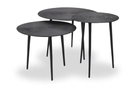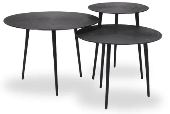 Salontafelset Nobby IV-52.016 van het merk Label51 is een set tafels gemaakt van robuust gegoten metaal, uitgevoerd in de kleur Zwart. De tafelset bestaat uit drie tafels met ieder een eigen grootte en hoogte. De tafels zijn voorzien van speelse uitlopende pootjes die zorgen voor extra stevigheid. De top is voorzien van een prachtige gravure; lijnen vanuit het centrum lopend naar de buitenkant. De speelse uitlopende poten zorgen voor stevigheid en een hip uiterlijk.