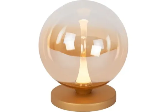 Tafellamp Gisela van het merk Lucide straalt pure elegantie uit met zijn betoverende bolvormige design. De amberkleurige glazen kap zorgt voor een warme en sfeervolle gloed, terwijl de strakke, goudkleurige basis een luxueuze uitstraling toevoegt. Dankzij de dimbare functie bepaal je eenvoudig de lichtintensiteit, waardoor de lamp perfect is voor zowel subtiele sfeerverlichting als functioneel gebruik. Het snoer met schakelaar maakt de bediening moeiteloos en praktisch.